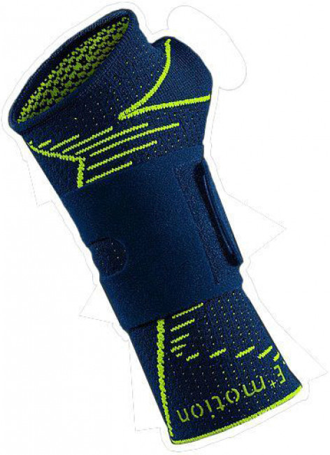 РАЗМЕР ОПРЕДЕЛЯЕТСЯ ПО ДЛИНЕ ОКРУЖНОСТИ ЗАПЯСТЬЯ: 1 - 13-15 см, 2 - 15-17 см, 3 - 17-19 см, 4 - 19-21 см. Все потребности спортсменов учтены в лучезапястном бандаже Manumed active E+motion. Это идеальное решение для лечения травм, артроза, нестабильностей и других заболеваний запястья, которые могут возникнуть при длительных спортивных нагрузках. Он состоит из вязаной манжеты, стабилизирующей шины и широкого фиксирующего ремня. Шина располагается на ладонной поверхности и поддерживает даже массивную кисть. Компрессионная ткань улучшает кровообращение, что способствует быстрому разрешению отека (гематомы) и ускоренной регенерации. Показания к применению: Травмы лучезапястного сустава; Артроз лучезапястного сустава; Периартрит (посттравматический, ревматической природы или после операции); Нестабильность лучезапястного сустава; Теносиновит.