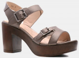 ПодробнееЭти босоножки из натуральной кожи, окрашенной под платину, оснащенные трендовой платформой, переходящей в прямоугольный каблук не могут не вызвать восхищения на женской ножке. Их дизайн и оригинальные аксессуары соответствуют концепции фасона Sherif. Способны сыграть роль изюминки любого образа, выбранного их владелицей. Очень экспрессивная модель.
