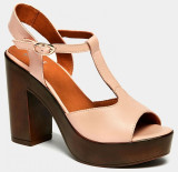 ПодробнееРозовые босоножки MAY на высоком каблуке не оставят вас равнодушными. Модель изготовлена из натуральной кожи, добавлены удобный ремешок с застежкой золотого цвета и контрастная подошва, у которой высокая платформа плавно переходит в каблук. Эти стильные туфли подойдут к любому летнему гардеробу и станут удачным выбором в этом сезоне.