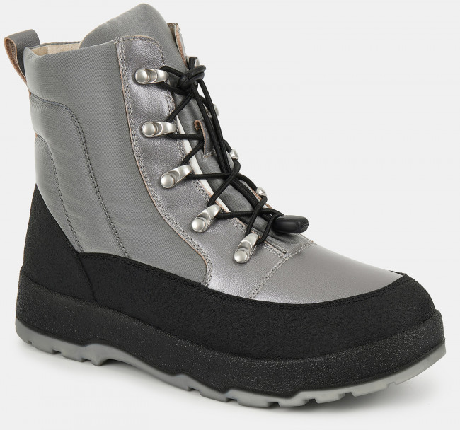 ПодробнееЗимние детские ботинки серого цвета. Верх модели выполнен из сочетания кожи и технологичного текстиля. Эластичные шнурки с регулируемым фиксатором удобны в пользовании. Подкладка и кожа утеплены натуральным мехом. Двухсоставная подошва амортизирует и отлично держит сцепление со скользкой дорогой. Теплые ботинки - правильный выбор на самые холодные и снежные дни.