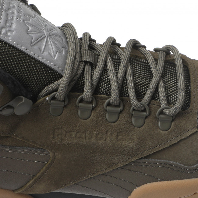 ПодробнееПогода? Какая погода? Надень эти кожаные ботинки Reebok и скажи зиме: "Ты меня не удивишь!". Грубая подметка, напоминающая акулью пасть, создает сцепление с поверхностью. Подкладка не дает ногам замерзнуть. Ну давай, мороз. У тебя… кхм… все получится.