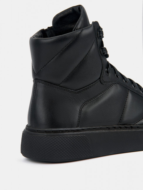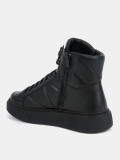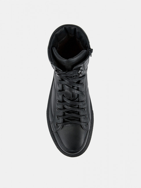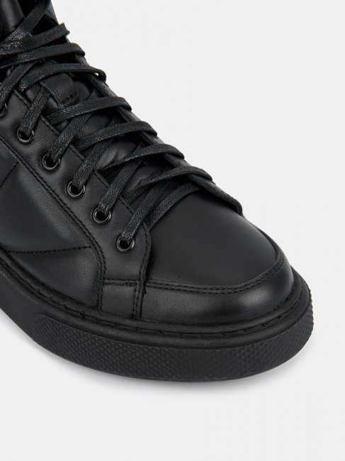 ПодробнееДемисезонные женские кеды AURELIA черного цвета. Выполнены из качественной натуральной кожи, прочной и долговечной. Прострочка на объемных берцах делает силуэт эффектным и современным. Шнуровка регулирует посадку, пара удаленных люверсов на щиколотке позволяет сделать прилегание более плотным. Надевать кеды легко благодаря молнии. Текстильно-кожаная подкладка в сочетании со стелькой из текстиля отводят влагу и дают стопам дышать, в кедах комфортно в течение всего дня. Подошва из ТЭП не скользит и долго служит. Подошва прошита по ранту, она не отклеится. Высокие кеды дополнят образы в стилях спорт и casual, сочетайте их с джинсами, брюками и юбками из трикотажа.