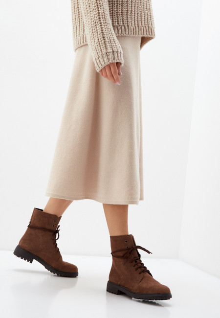 ПодробнееСтильные женские высокие ботинки на шнуровке ELBRUS универсальный вариант прогулок с друзьями на выходных. Натуральная замша удобная колодка и внутренняя подкладка из натурального меха обеспечат комфорт для Вас. Стилисты рекомендуют сочетать брюками из хлопка неформального типа, с джинсами с потертостями всех оттенков, с вельветовыми или кожаными брюками.