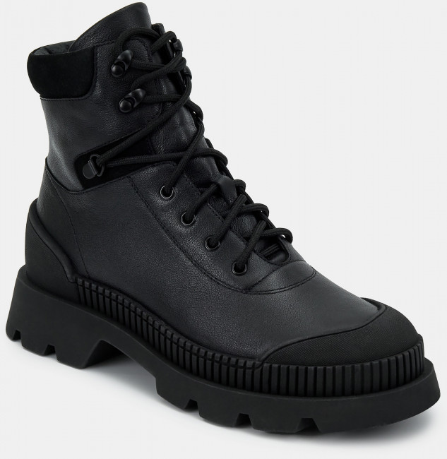 ПодробнееЖенские ботинки черного цвета из качественной натуральной кожи и нубука. Подкладка модели выполнена из комбинированного материала - натуральной кожи и технологичного текстиля. Текстильная стелька впитывает влагу и амортизирует. Подошва из гибкого ТЭП комфортна и устойчива к износу. Оригинальный протектор обеспечивает надежное сцепление с любой поверхностью. Городские ботинки отличный выбор на демисезонный период. Модель впишется в активный и повседневный casual образ.