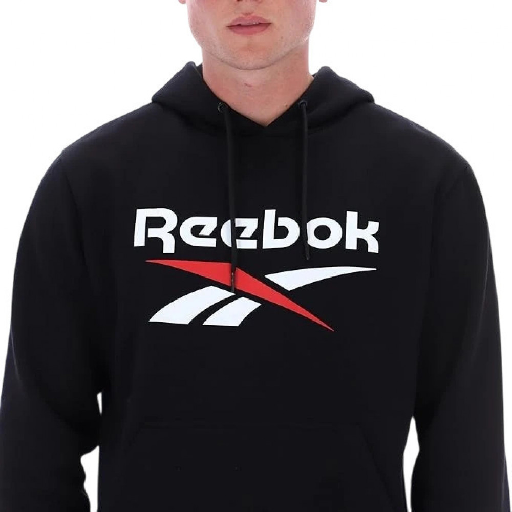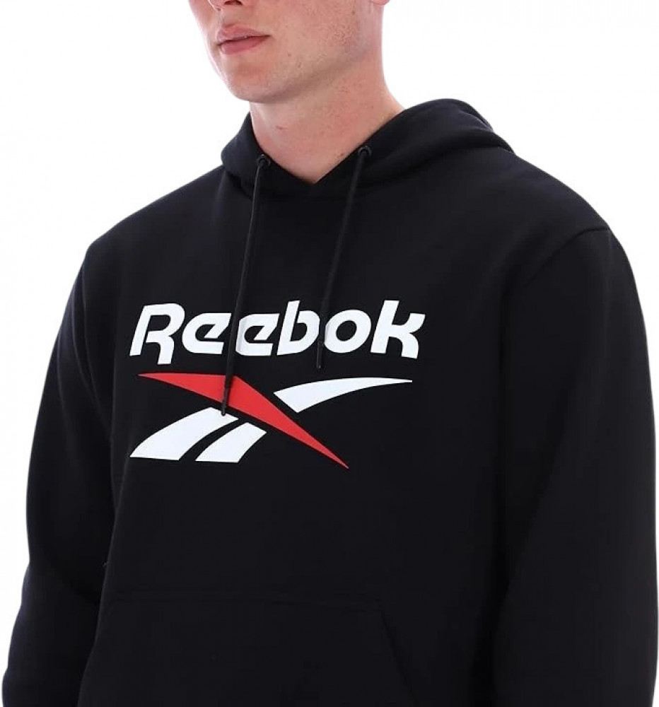 Дизайн худи включает крупный двухцветный логотип Reebok на груди, который придает ему современный и динамичный вид. Манжеты и нижняя кромка имеют эластичные резинки, что обеспечивает идеальную посадку и позволяет сохранить тепло. Практичные карманы в стиле «кенгуру» добавляют удобства, предоставляя место для рук, телефона или других мелочей.