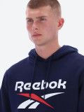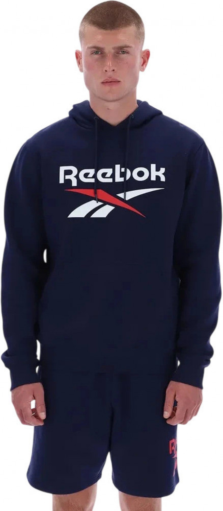 Дизайн худи включает крупный двухцветный логотип Reebok на груди, который придает ему современный и динамичный вид. Манжеты и нижняя кромка имеют эластичные резинки, что обеспечивает идеальную посадку и позволяет сохранить тепло. Практичные карманы в стиле «кенгуру» добавляют удобства, предоставляя место для рук, телефона или других мелочей.