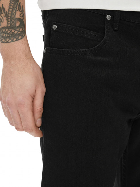 ПодробнееМужские черные джинсы Lee прямого кроя. Выполнены из денима с добавлением эластана для комфорта движения. Cсредняя посадка. Застежка на молнии. Легендарная кожаная нашивка на задней стороне пояса. Карманы спереди, два кармана с фирменной строчкой Lee сзади.