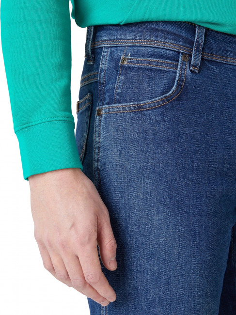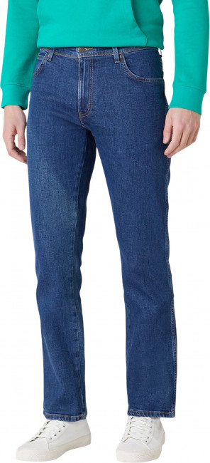 ПодробнееМужские джинсы Wrangler Regular синего цвета прямого кроя. Выполнены из из денима с добавлением эластана для комфорта движения в течение всего дня. Застежка на молнии. Средняя посадка. Карманы спереди, два кармана с фирменной строчкой W и легендарной кожаной нашивкой бренда сзади.