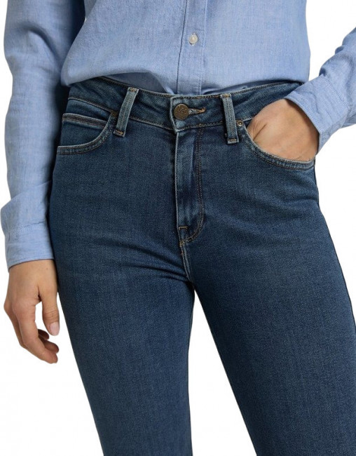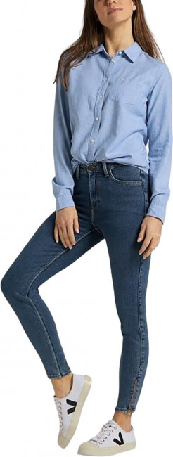 ПодробнееЖенские синие джинсы Lee. Выполнены из мягкого денима с добавлением эластана для комфорта движения. Облегающий крой, средняя посадка. Застежка на молнии. Легендарная кожаная нашивка на задней стороне пояса. Карманы спереди, два кармана с фирменной строчкой Lee сзади.