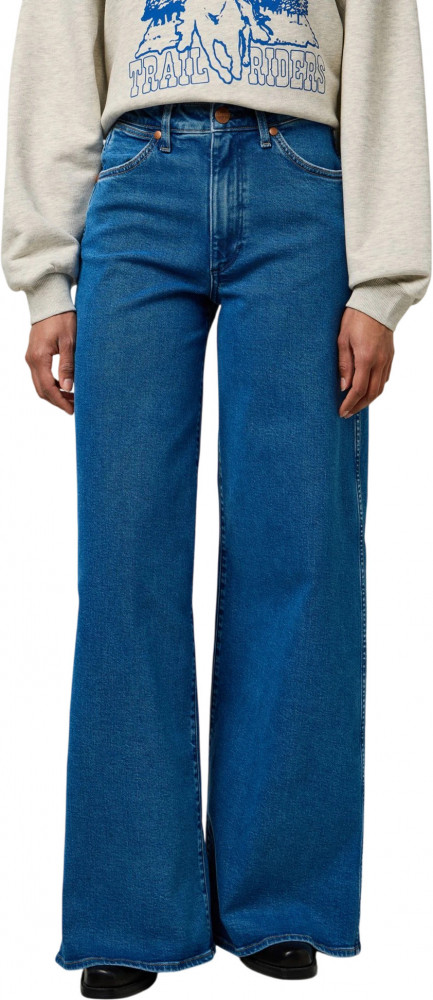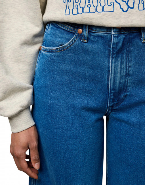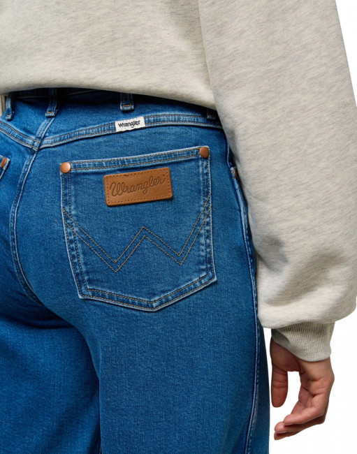 Высокая талия позволяет разнообразить стиль: джинсы отлично смотрятся как в сочетании с заправленной блузкой для более элегантного вида, так и с футболкой и кроссовками для расслабленного образа. Особенности включают семь шлёвок для ремня, застёжку на молнию и пуговицу, а также фирменную строчку в виде буквы "W". Завершающий штрих — светло-коньячная кожаная нашивка на заднем кармане. Аутентичный дизайн с пятью карманами и классической металлической фурнитурой дополняется функциональным кармашком для монет. Эти джинсы — идеальный выбор для стильных девушек, ценящих комфорт и модные акценты.