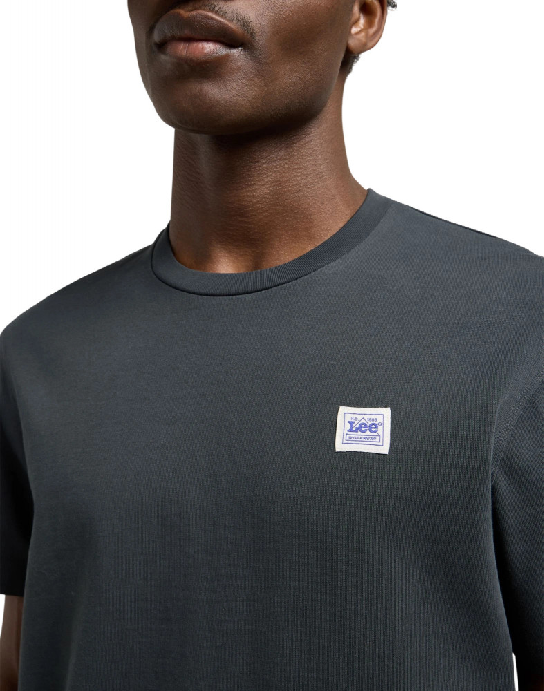 Особое внимание привлекает тканый логотип Workwear от Lee, который добавляет характер и подчеркивает аутентичность изделия. Логотип аккуратно размещен, не перегружая дизайн, что делает футболку универсальной для сочетания с разными элементами одежды.
