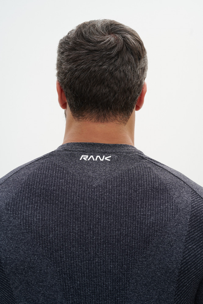 Материал из нейлона и полиэстера быстро выводит влагу, сохраняет форму и поддерживает комфортную температуру тела. Технология Seamless - это бесшовную конструкция и снижение трения. Свободный крой не ограничивает движения, прилегающая зона плеч подчёркивает спортивный силуэт. Круглая горловина выполнена из мягкой ткани для комфортного прилегания. Пластизолевые логотипы RANK размещены спереди и на спинке у горловины.