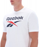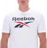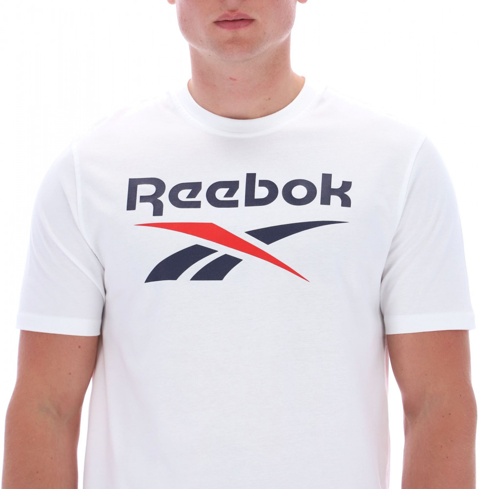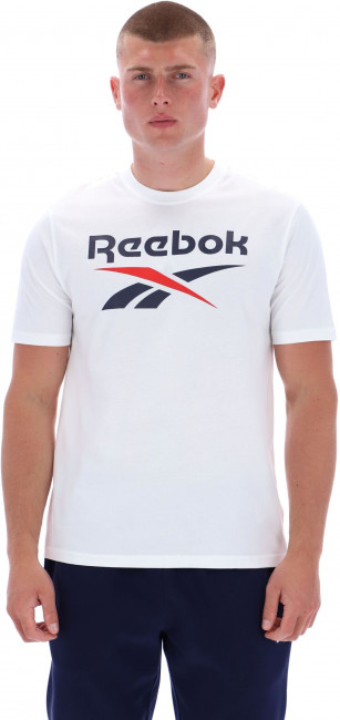 Дизайн футболки ярко выделяется благодаря большому логотипу Reebok на груди, который привлекает внимание и подчеркивает вашу уверенность и динамичный образ. Классический круглый вырез и короткие рукава делают ее универсальным элементом гардероба, который легко комбинируется с джинсами, спортивными штанами или шортами.