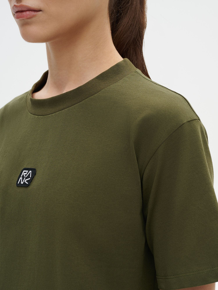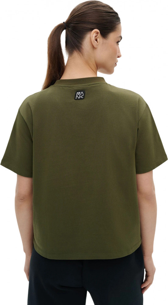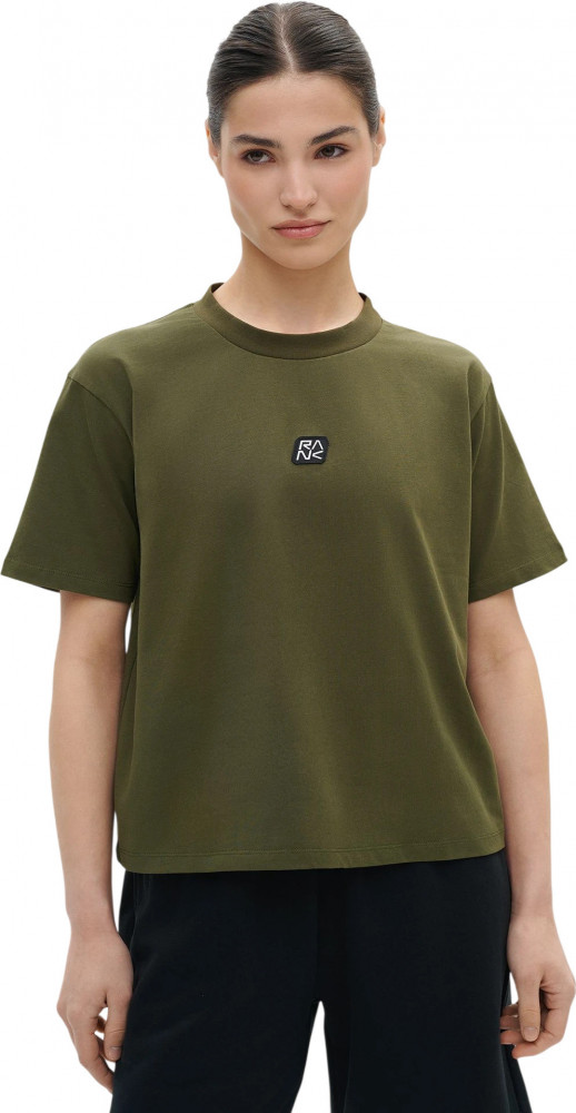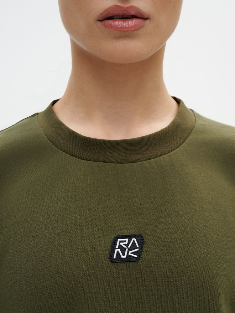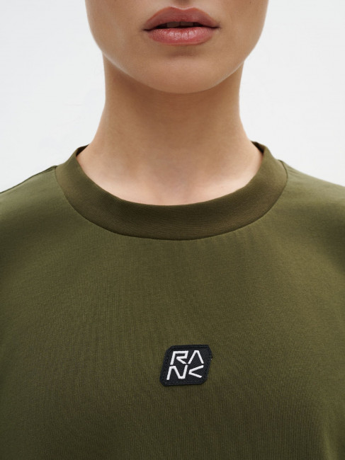 Плотный дышащий хлопок для комфорта каждый день. Свободный укороченный силуэт с естественной посадкой. Широкая круглая горловина с акцентной рибаной. Пришивной шеврон с логотипом RANK расположен спереди по центру и сзади у горловины.