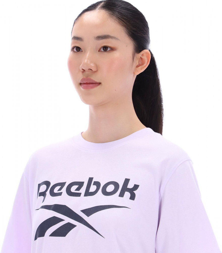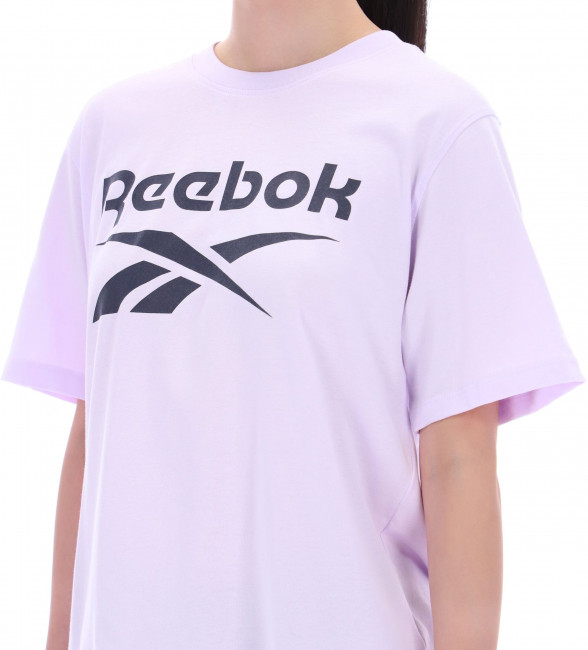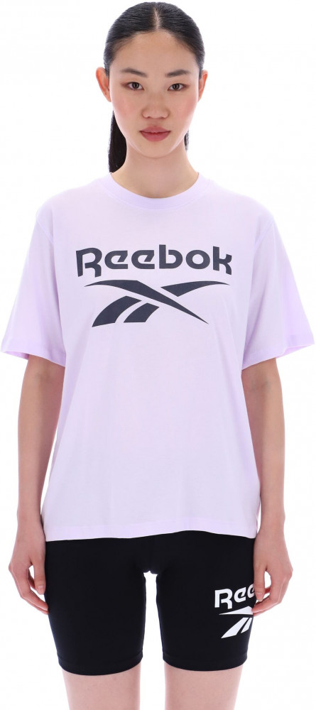 Выполненная из мягкой и качественной ткани, футболка гарантирует превосходный комфорт на протяжении всего дня. Главной особенностью является крупный логотип Reebok, который эффектно занимает переднюю часть, придавая модели современный и яркий вид.
