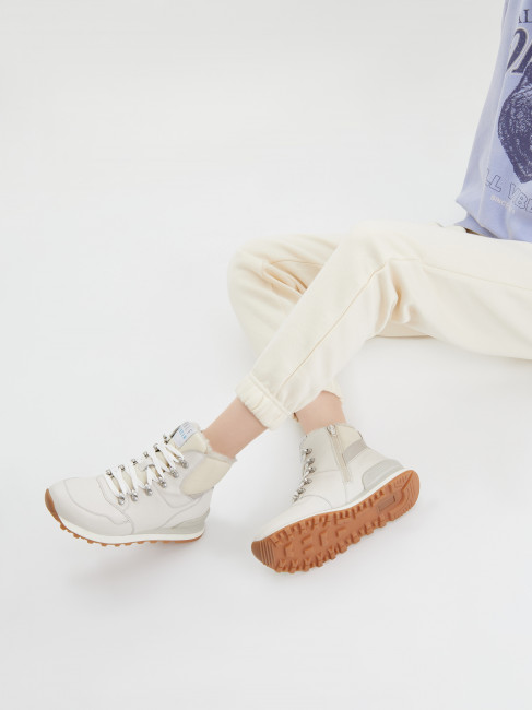 ПодробнееКроссовки женские молочного цвета из натуральной кожи с меховым утеплением. Модель дополнена элементами из текстиля и искусственного материала. Шнуровка регулирует посадку, обеспечивая прилегание обуви. Кожано-шерстяная подкладка и стелька полностью из натурального шерстяного меха согреют ноги при минусовых температурах. Упругая подошва из полиуретана смягчает удары, прочный протектор из ТПУ не скользит и продлевает срок службы обуви. Сочетайте кроссовки зимние с утепленными брюками и трикотажными платьями в стиле casual.