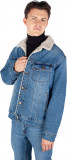 Куртка выполнена из прочного денима, обеспечивающего долговечность и надежность. Она оснащена длинными рукавами и стильным воротником, который добавляет завершенность образу. Воротник не только подчеркивает классический стиль, но и обеспечивает дополнительный комфорт и защиту от холода.