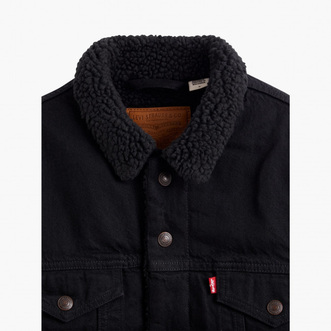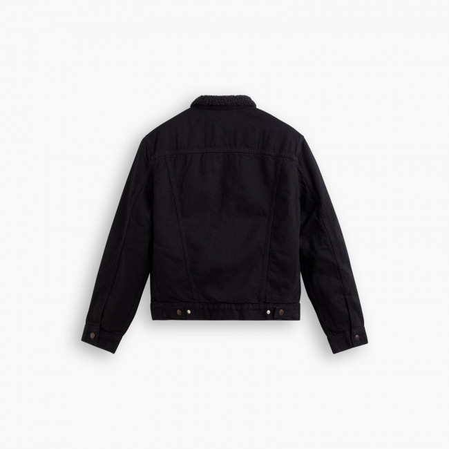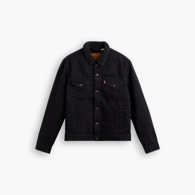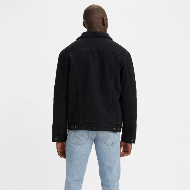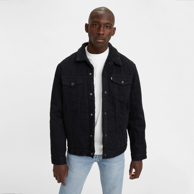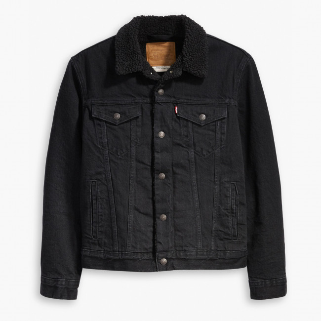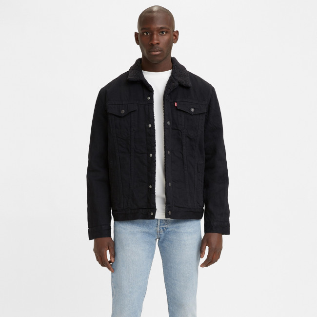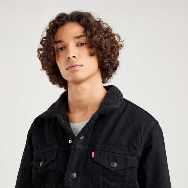 Мужская черная джинсовая куртка Levis Sherpa Trucker с утеплителем из шерпы. Стеганая подкладка в рукавах для утепления. Заостренный воротник с однотонной оторочкой из шерпы. Прямая кокетка. Планка на кнопках спереди. Нагрудные карманы с клапанами на кнопках. Вместительные внутренние карманы для хранения кошелька, смартфона, протеинового батончика или фляжки. Регулируемый ремешками подол. Джинсовка Levis класического кроя выполнена из 100% хлопка и подходит для ношения в прохладные дни.