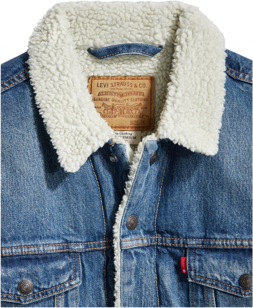 Оригинальная джинсовая куртка с 1967 года. Символ самовыражения на протяжении десятилетий и отличная отправная точка для индивидуализации. Со временем улучшается от естественного износа с выцветанием, пятнами и дырами. Теплый утеплитель из шерпы и мягкая стеганая подкладка в рукавах. Свободная посадка. Планка на кнопках спереди. Накладные карманы на груди с клапанами на кнопках. Прорезные боковые карманы для рук.