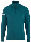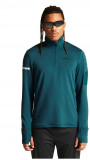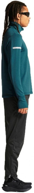 Кофта изготовлена из переработанного полиэстера, утепленного флисовым слоем с внутренней стороны. Сетчатые вставки подмышками и в области шеи способствуют отводу излишней влаги и улучшенной вентиляции. Молния до середины груди с внутренней планкой защищает шею от натирания, а высокий воротник сохраняет дополнительное тепло. Манжеты с отверстиями для большого пальца защищают кисти от холода. На левом рукаве размещен карман для хранения ключей или карточек.