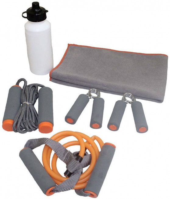 Набор для тренировок (2 кистевых эспандера, скакалка, эспандер, бутылка, полотенце)