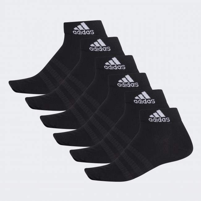 Легкие, тонкие и удобные носки до щиколотки. Шесть пар в упаковке. Выполнены из материала с высоким содержанием хлопка и усилением в области свода стопы. Гладкий мысочный шов. Рифленые манжеты с логотипом adidas в спортивном стиле.