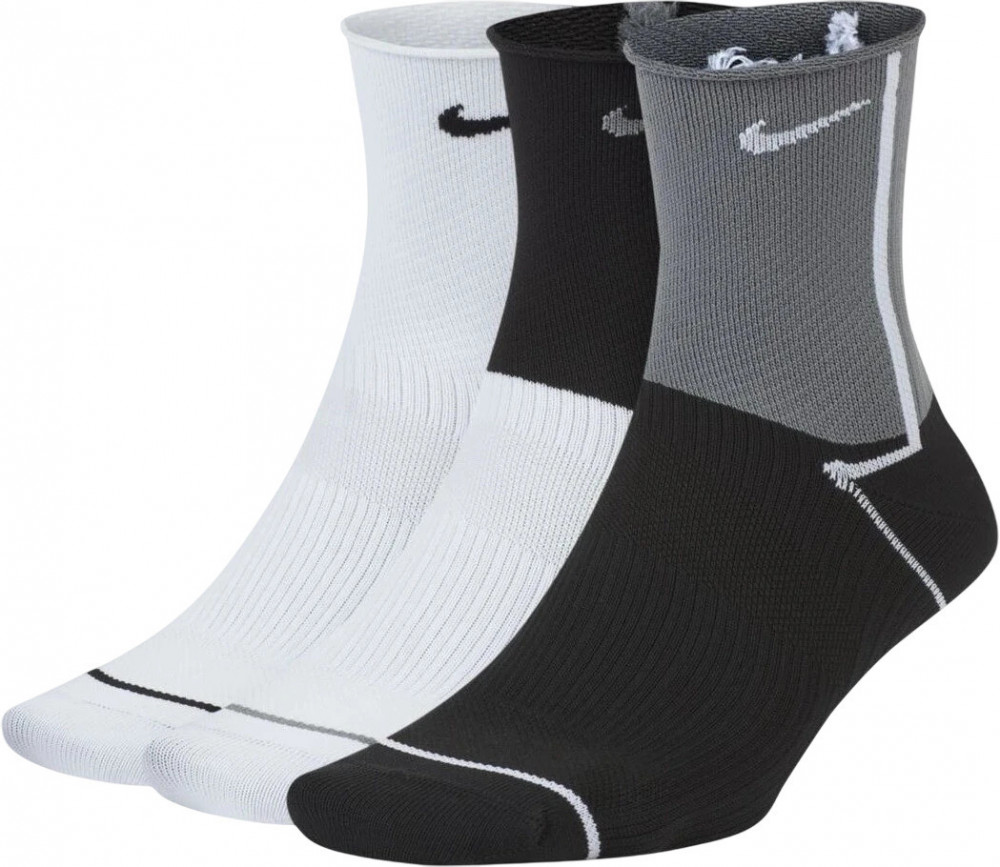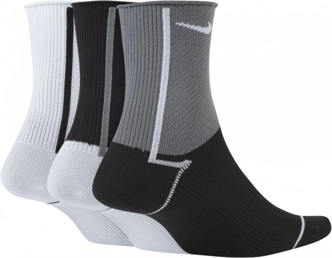 Nike Everyday Plus Lightweight Women's Training Ankle Socks (3 Pairs). ПОДДЕРЖКА, ОТВЕДЕНИЕ ВЛАГИ И КОМФОРТ. Носки Nike Everyday Plus Lightweight из влагоотводящей и дышащей сетчатой ткани обеспечивают комфорт и охлаждение на протяжении всей тренировки. Рубчатая лента вокруг свода стопы плотно прилегает для поддержки. Технология Dri-FIT отводит влагу и обеспечивает комфорт. Рубчатая лента вокруг свода стопы плотно прилегает для поддержки. Дышащая конструкция в верхней части для воздухопроницаемости. Усиленная пятка и носок для повышенной прочности.