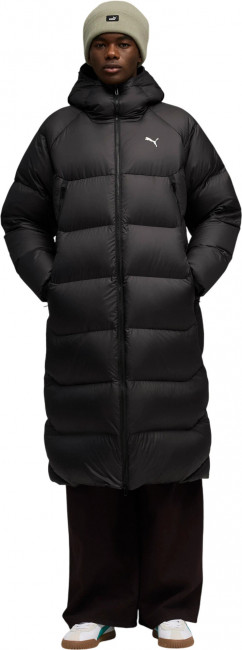 Длинный мужской пуховик Down Puffer Coat от Puma, произведенный с использованием технологии WarmCELL. Выполнен из ветроустойчивой ткани с влагоотталкивающей пропиткой, оснащен натуральным пухом и пером в соотношении 90/10. Капюшон, прямой крой, воротник-стойка, молния с ветрозащитной планкой, два боковых кармана для рук, утепленных флисовой подкладкой с одной из сторон.