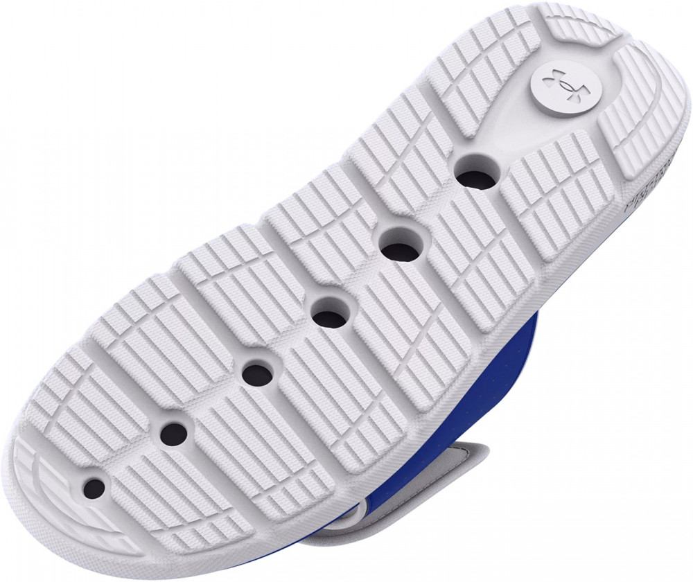 Подошва из ЭВА с прочными тяговыми вставками в области пятки для легкости, амортизации и комфорта.