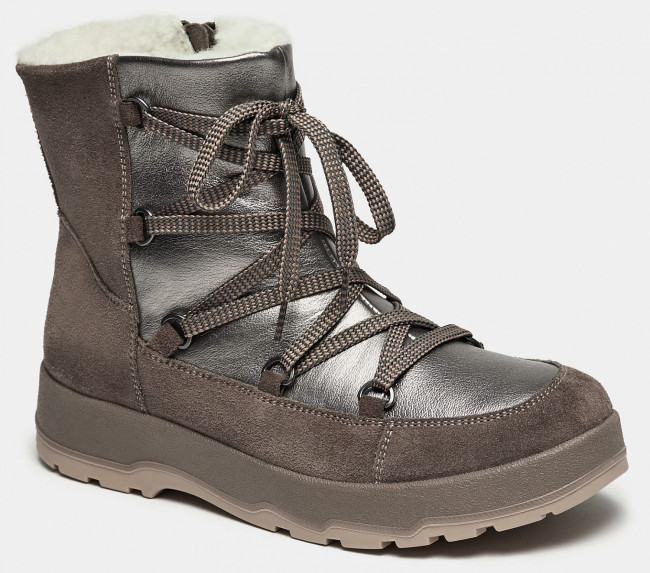 ПодробнееСерые зимние полусапоги фасона ARCTICK одни из самых теплых моделей в новой женской коллекции. Модель выполнена из спилка, теплый, натуральный мех согреет Вас в любой мороз, а подошва с рельефным протектором поможет устоять на любом покрытии. Обувь подойдет любительницам практичных и простых решений.