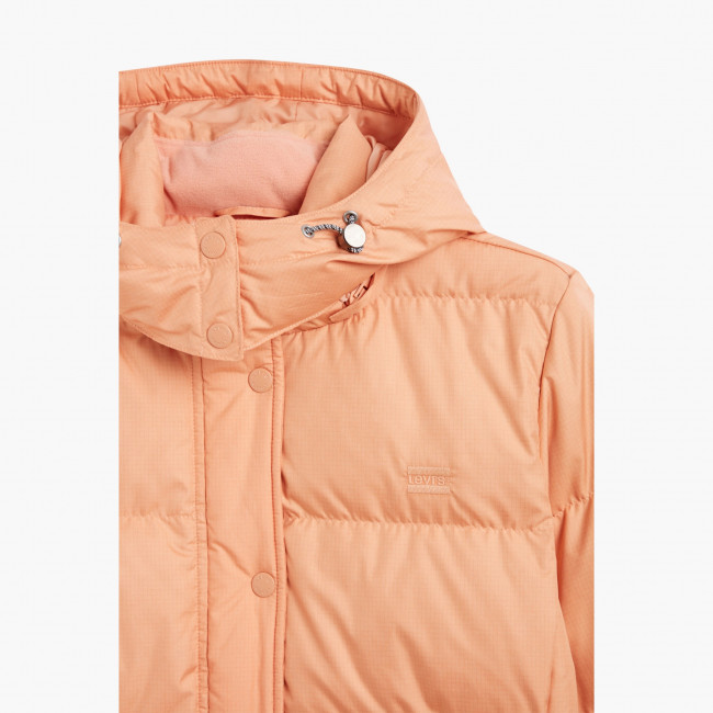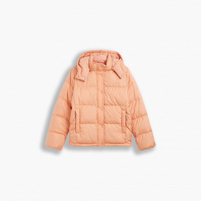 ПодробнееЖенский пуховик Levis QUINN Short DOWN PUFFER укороченного кроя. Застежка на молнию с клапаном на кнопках в тон куртки. Капюшон с эластичным шнурком для регулировки, застегивается на кнопки, если особенно холодно. Эластичные манжеты. Завязки на резинке на капюшоне, воротнике, карманах и подоле помогают удерживать тепло. В качестве утеплителя использован высококачественный пух. Небольшой логотип бренда вышит на груди слева.