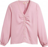 ПодробнееЖенская блузка с длинным рукавом Levis непринужденного кроя. Модель имеет изящный V-образный вырез, сборки и застежку на пуговицы спереди, слегка свободные рукава с тонкими манжетами. Милая блузка, которая сочетается как с джинсовыми юбками, шортами, джинсами, так и с более классическими предметами гардероба.