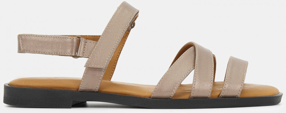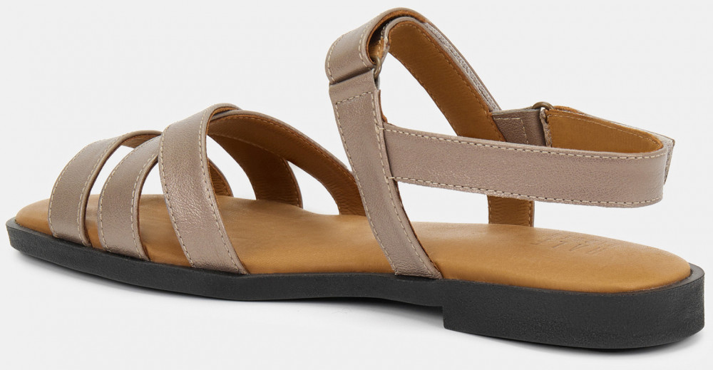 ПодробнееСандалии женские POLINA бежевого цвета с серебристым блеском. Ремешки выполнены из натуральной кожи снаружи и внутри, они прочные и мягкие. Посадку регулируют застежки-липучки, в модели будет комфортно людям с разным подъемом стопы. Стелька из искусственного материала прочная, надолго сохранит свой вид, что особенно важно для открытой обуви. Подошва из полиуретана прочная и гибкая, небольшой каблук поддержит стопу. Блестящие сандалии дополнят как casual образы с джинсами, так и более женственные сочетания с платьями и юбками.