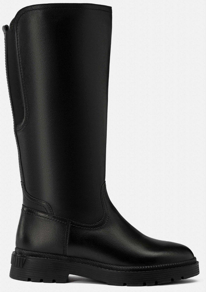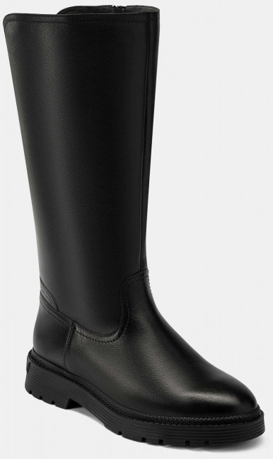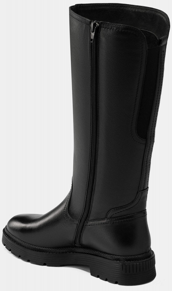ПодробнееЗимние сапоги фасона CORA на широкую ногу подойдут тем, кто ценит комфорт и качество. Эта модель в черном цвете выполнена из натуральной матовой кожи и оснащена подкладом и стелькой из меха в нижней части и утепленным текстильным подкладом в районе голенища. Подошва из ТЭП обеспечивает устойчивость на скользком снегу и не пропускает холод от промерзшей земли. Низкий каблук позволит долго ходить, не уставая. На задней части голенища расположена растягивающаяся текстильная вставка, которая предотвратит передавливание ноги.