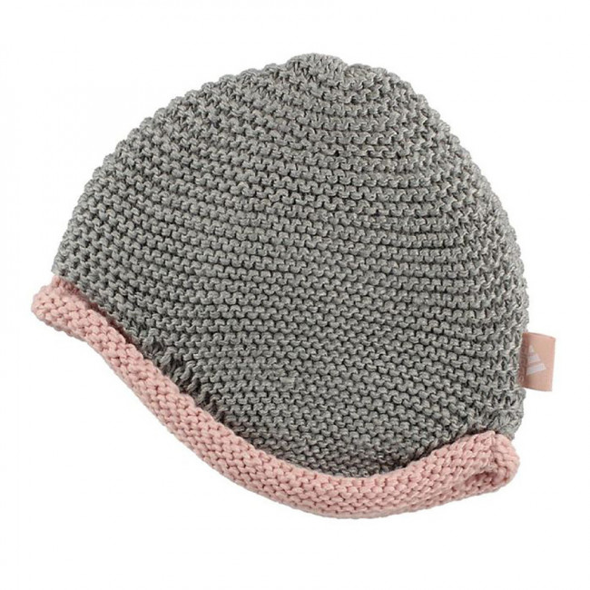 Красивая вязаная шапка adidas Performance серого цвета с розовой каймой для девочек.
