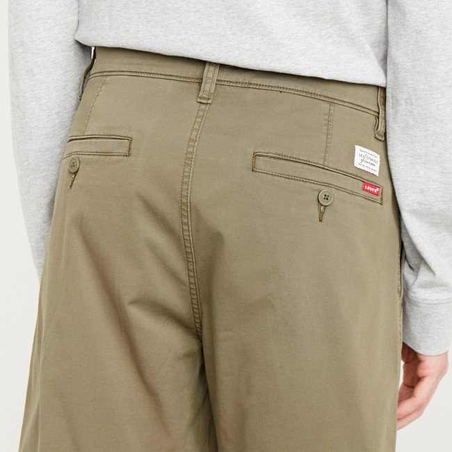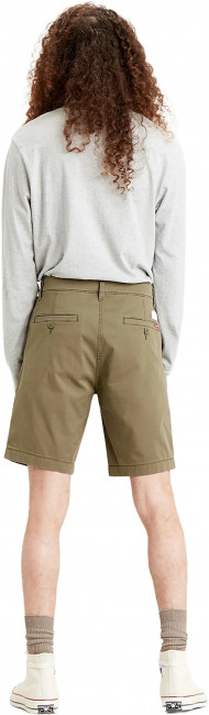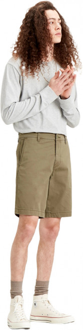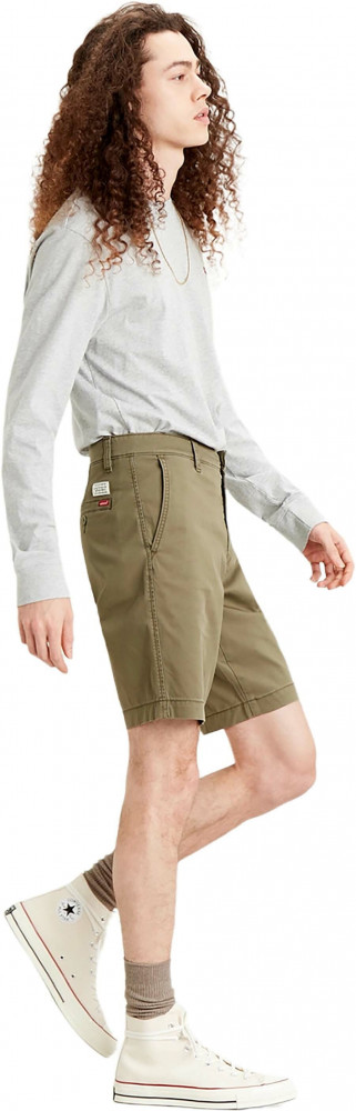 Мужские шорты Levis Chino Taper. Выполнены из саржевой ткани с добавлением эластана для комфорта движения. Застежка на молнии. Посадка ниже талии. Карманы спереди и два карманана пуговицах сзади.
