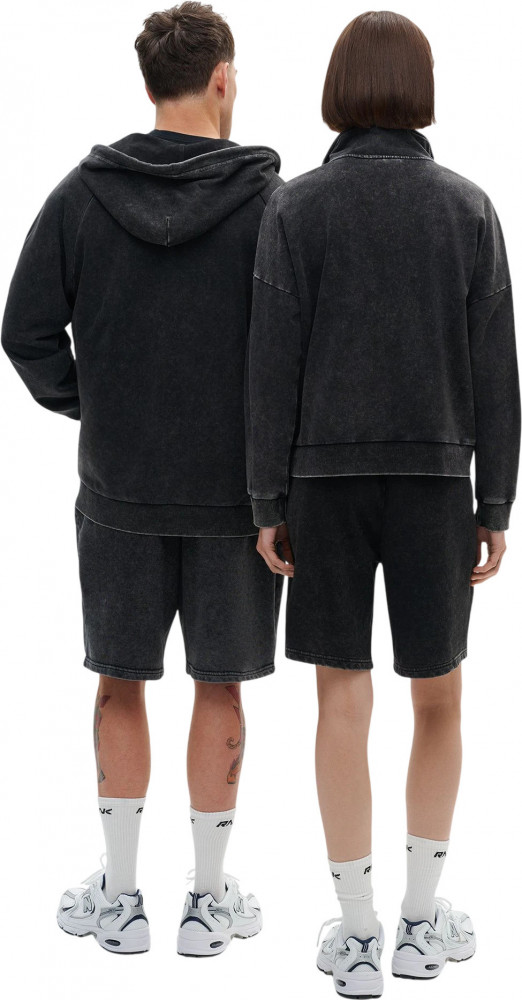 Петельчатый футер - мягкий и дышащий. Прямой свободный крой обеспечивает комфорт и свободу движений. Эластичный верх с плоскими плетёными шнурками для регулировки объёма. Два боковых открытых кармана с кантом в тон ткани. Лаконичный патч RANK справа под карманом.