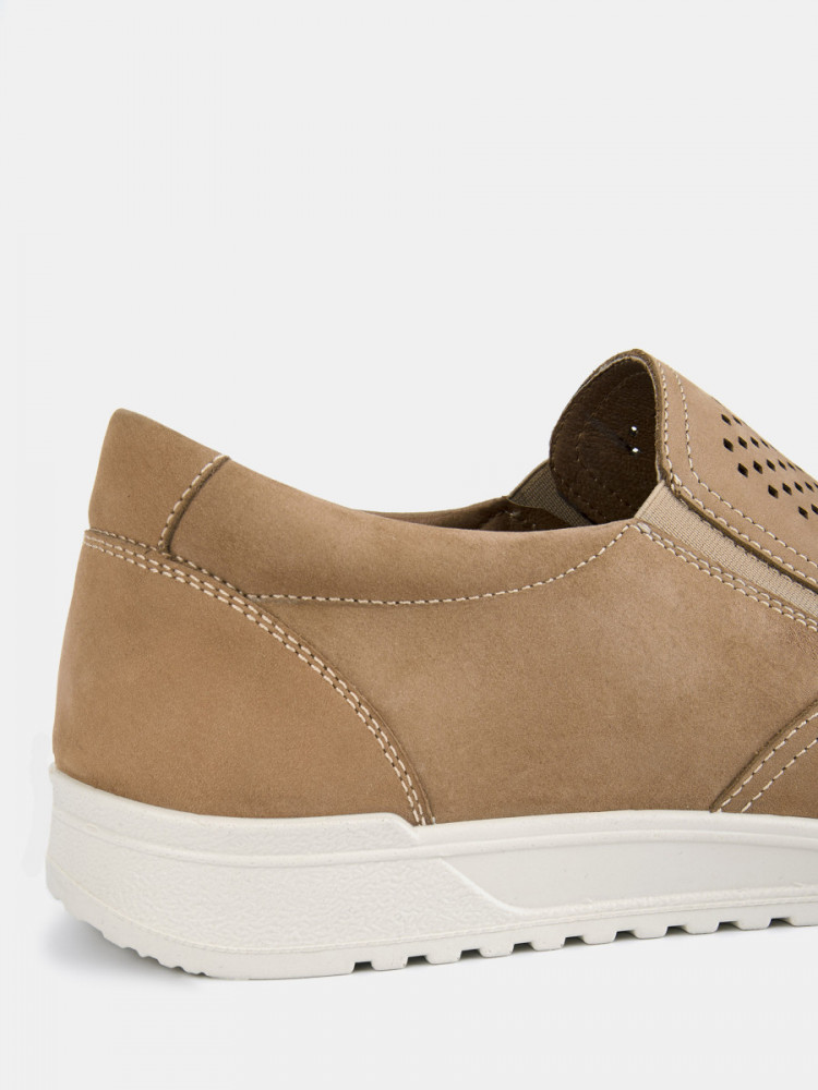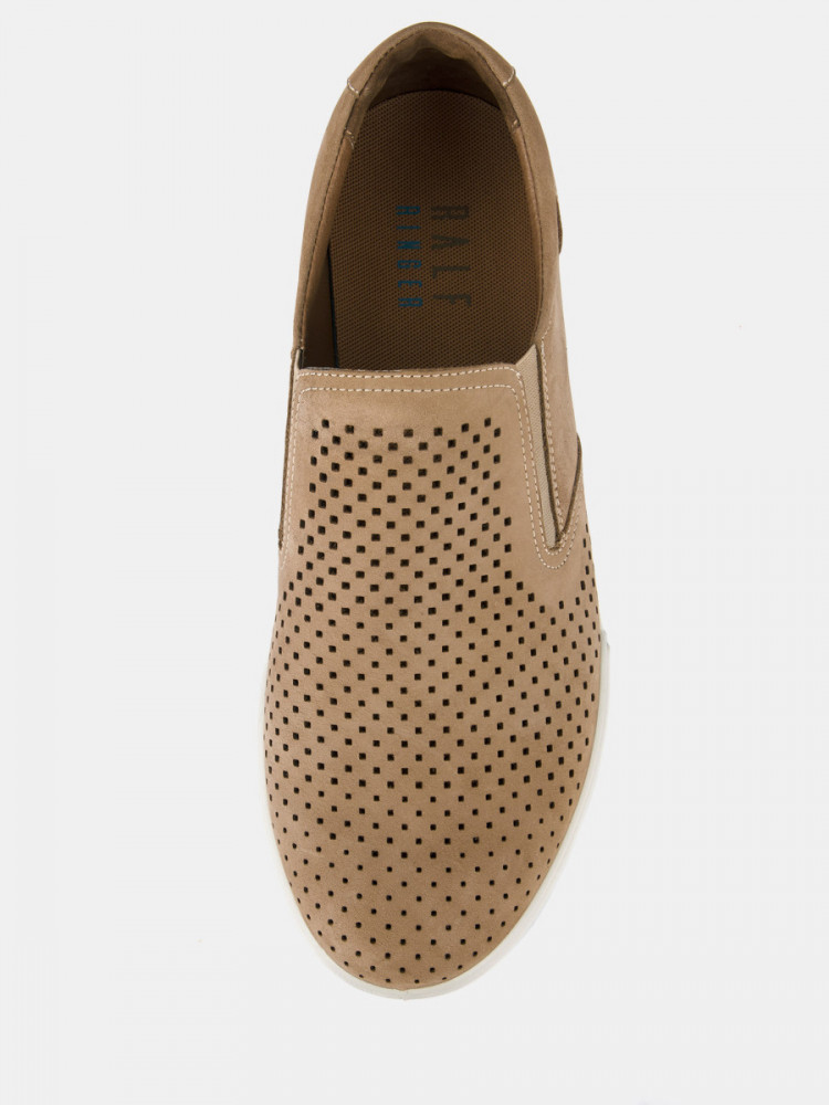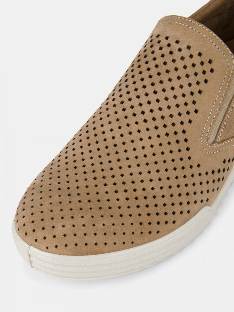 ПодробнееСлипоны мужские RAUL бежевого цвета. Натуральный нубук прочный и долговечный, на нем долго не появляются заломы в местах частых сгибов. Сквозные отверстия перфорации свободно пропускают воздух, в сочетании с кожаной подкладкой это позволяет ногам дышать. Модель не имеет шнурков и застежек, комфортную посадку на разный подъем обеспечивают эластичные вставки по бокам. Двухслойные стельки созданы специально для активной жизни: верхний слой из текстиля дышит и отводит влагу, основа из антибактериального материала Polisport смягчает удары при ходьбе, чтобы ноги не уставали. Подошва из полиуретана прочная и амортизирующая, литьевой способ крепления подошвы делает пару долговечной. Сочетайте бежевые мужские слипоны с летними брюками, шортами и джинсами.