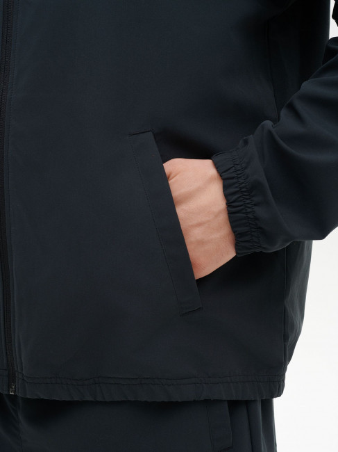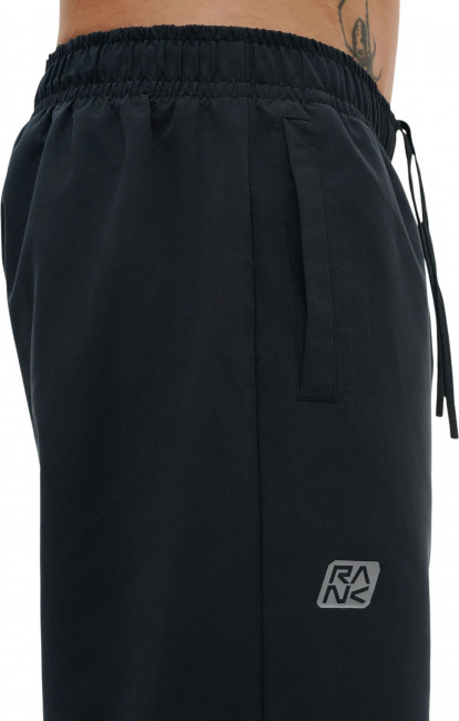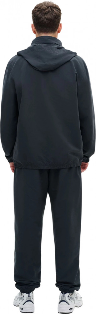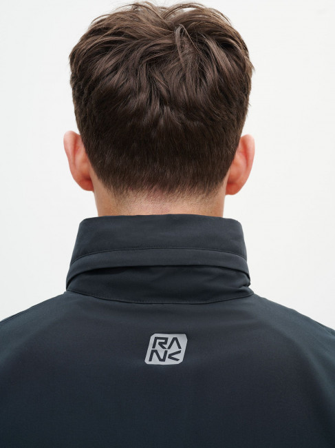 Костюм включает ветровку со скрытым капюшоном на молнии, который можно убрать в воротник-стойку. Центральная реверсивная молния с силиконовым пуллером обеспечивает аккуратный внешний вид. Боковые карманы выполнены без молний и дополнены лёгкой сетчатой подкладкой. Брюки прямого кроя обеспечивают свободу движений. Два боковых кармана позволяют удобно расположить необходимые мелочи. Внутренние плоские шнурки помогают настроить посадку. Манжеты на ветровке, рукавах и по низу брюк удерживают тепло и сохраняют форму. Пластизолевые логотипы RANK нанесены на ветровку и брюки.