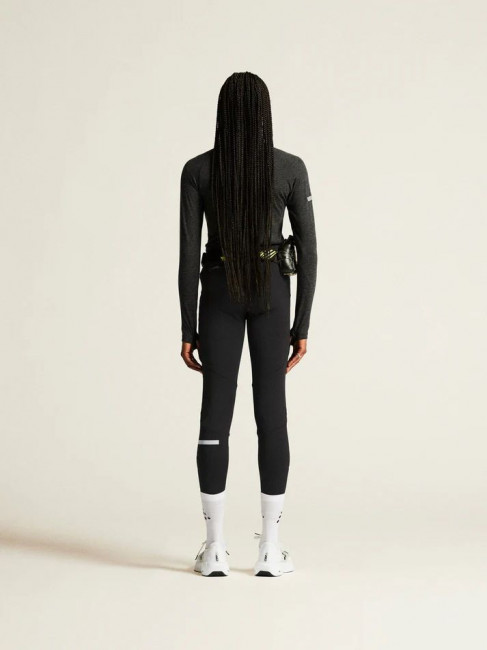 Широкий пояс гарантирует удобную посадку, а задний карман на молнии позволяет хранить мелочи, такие как ключи или карточки. Светоотражающий принт повышает безопасность на пробежках в условиях слабого освещения, что делает эту модель идеальным выбором для утренних или вечерних пробежек. Молнии внизу штанин обеспечивают удобство при надевании и снятии тайтсов.