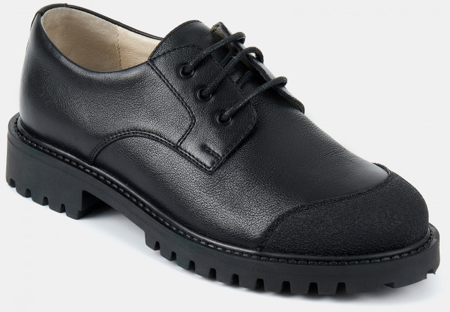ПодробнееДетские полуботинки черного цвета. Верх модели выполнен из качественной натуральной кожи и технологичного текстиля. Кожаные подкладка и стелька отлично впитывают влагу. Классический силуэт дерби придает ботинкам изящности. Низкий каблук и анатомическая колодка обеспечивают комфорт. Подошва из ТЭП с глубоким протектором держит сцепление с любой поверхностью. Полуботинки на межсезонье и лето - обязательная составляющая базового гардероба. Модель дополнит любой строгий casual образ.